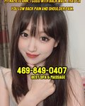 Grand Opening!Young beautiful grill with good technique that make all your body relax Are you looking for a professional and comfortable massage place? Do you need to relieve your stress and physical pain? At the moment, this is your first choice.we have professional Asian masseuses, warm and comfortable rooms and clean environment, convenient parking in front of the door. After a long day's hard work, I think this impeccable massage is the best choice for you. It is worth recommending by five stars. Sweet and gentle girls will not let you doubt their professional massage skills, which are strictly selected and trained by us to ensure that you will be satisfied. The best service attitude gives you the best massage experience. You will be impressed and come back here from time to time. $65/60Mins $45/30Mins We are Frankford rd and midway rd,When you see Trans Vision eye care,we in the back good for Plano Frisco Carrollton And Addison Dallas north tall way and president George Bush Turnpike Best spa & massage Call:469-849-0407 Open 7 Days 10:00AM-9:00PM Address:18181 midway rd, #200 Dallas,TX 75287